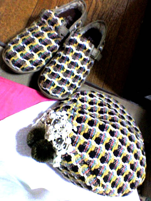 何事かと思って見てみたところ、なんと私が持ってる帽子と同じ生地で出来た靴が載ってるじゃないか!